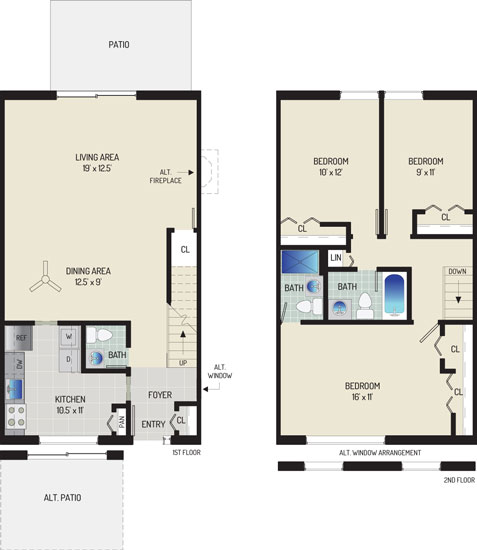 4 BR + 2.5 BA Townhome 4 Beds 2.5 Baths 1450 - 1615 sqft $2,898 per month 1 Unit Available View Details